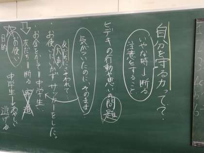 今回の学習は、小学生が巻き込まれる可能性のある危険な場面について考え議論する内容でした。