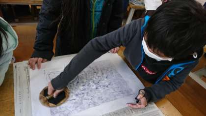 いよいよ出来上がった版にインクをつけて刷っていきます。