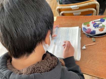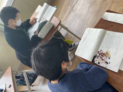 手塚治虫の人物像について読み取りをしました。特に幼少期に焦点を当て、手塚治虫の行動や考え方から、この人がどんな人物なのかをみんなで話し合いました。