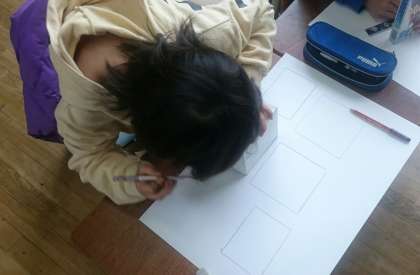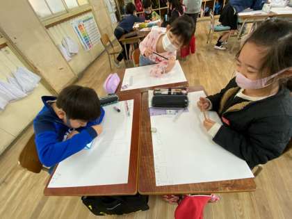 画用紙に1つずつかきうつして、面の形を比べていきました。