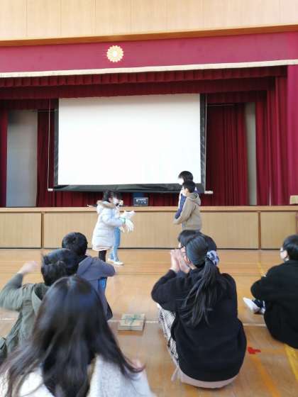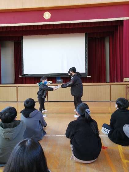 今日は1〜5年生がとてもうれしいお祝いの言葉や演奏をきかせてくれました。