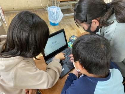 最高学年のお兄さんとお姉さんに教えてもらって、最初は緊張していましたが、優しい6年生のおかげで安心して取り組んでいる様子が見られました。