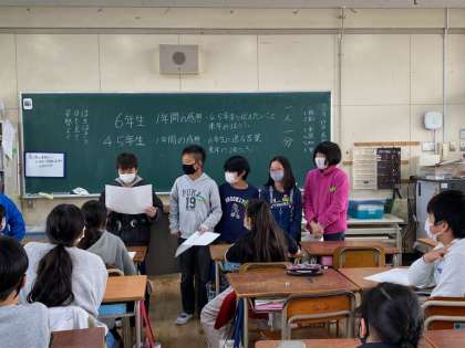 4・5年生は、引っ張っていってくれた6年生への感謝の思いを述べている子、また挑戦してみたいと話している子、6年生は、集会委員のやりがいや中学に行ってから頑張りたいことなどを、それぞれの想いを語りました。