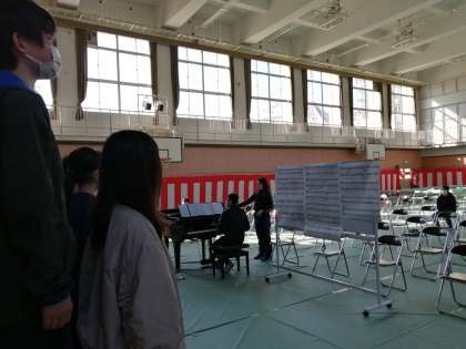 音楽科のスペシャリスト、岸本先生と甲斐先生に来ていただき、卒業式の歌の練習をしました。