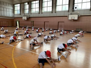 今日は体育の授業開きです。各クラス背の順並びを確かめてから、体づくりの基礎的な運動をしました。