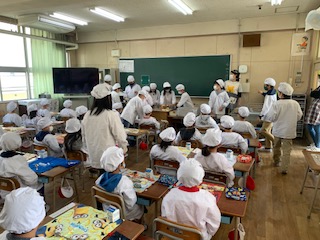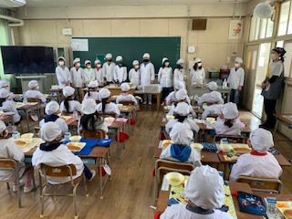 今週で1年生の給食配膳のお手伝いが終わりました。