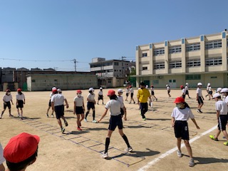 今日は午前中から気温がぐんぐん上昇しました。晴天のもと、張り切って体育です。