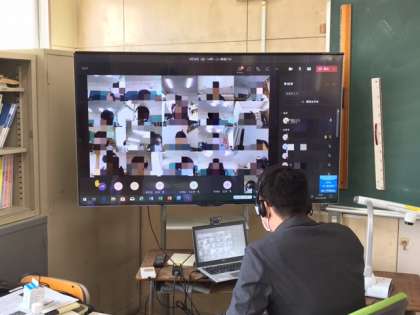 学校預かりの児童も、5年の教室とは別の部屋に移ってオンライン接続を行いました。