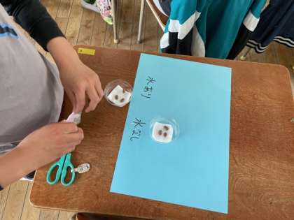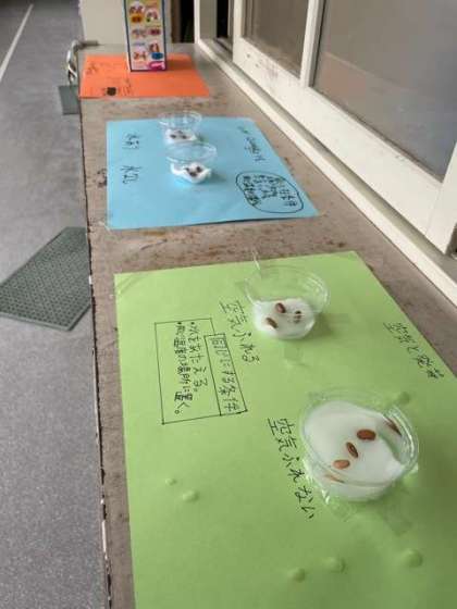 発芽に必要な条件を確かめる実験を行っています。