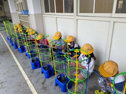 匂ってみたり、触ってみたりすると、いろいろなことに気が付き、前よりもっと自分のトマトに愛着を持っている様子が伺えました。