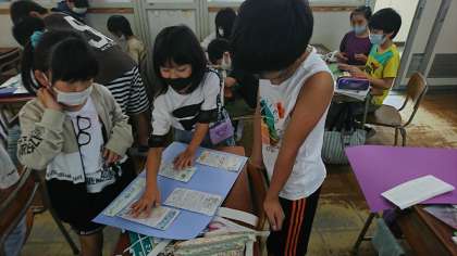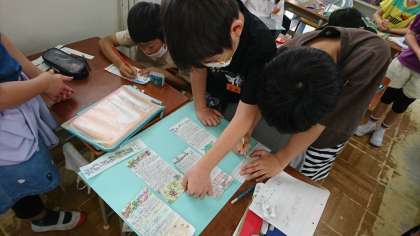 新聞の秘密や工夫を学んだあと、今度は自分たちで記事を書いて新聞を作ります。