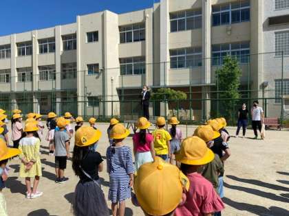 今日の全校朝会の様子です。校長先生の話は、熱中症について、マスクの着用の仕方、先を考えて行動しようと話がありました。明日からの生活目標は、廊下・階段を静かに歩こうです。5月の生活目標も継続し、新たにステップアップしましょう。