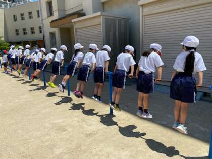 この後は、逆上がりを練習し、合格できた人は、二連続回りに挑戦しました。