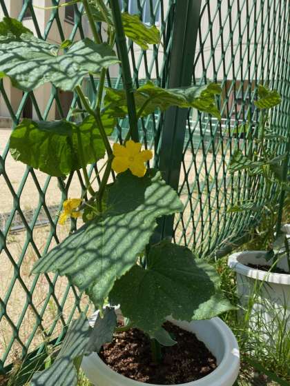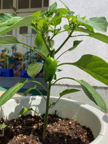 生活でトマトの観察をしました。くきが太くなって、ぐんぐん大きく育っています。きゅうり・ナス・ピーマンの様子を見ていると・・・小さなかわいいピーマンを発見!!みんなが愛情込めて、毎日水やりをしている証ですね。