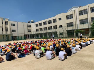 みな落ち着いて運動場に避難・集合し、しっかりと訓練を行うことができました。