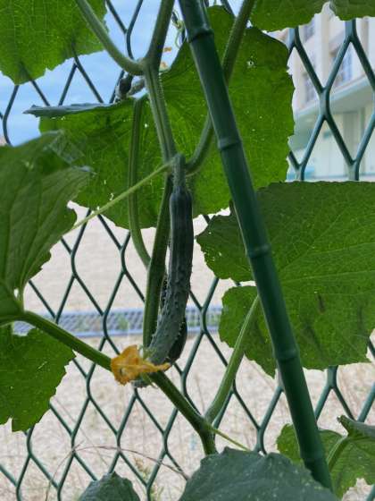 きゅうりもできてきました!毎日水やりをしてくれているみんなのおかげです。月曜日、みんなで観察するのが楽しみです。