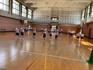 いよいよ来週から始まるプールに向けて、事前学習を体育館で行いました。