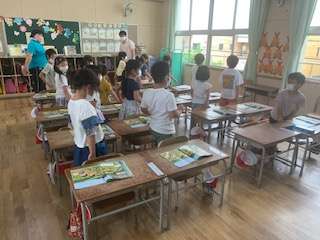 今日は、音楽で「さんぽ」の曲を歌いました。
