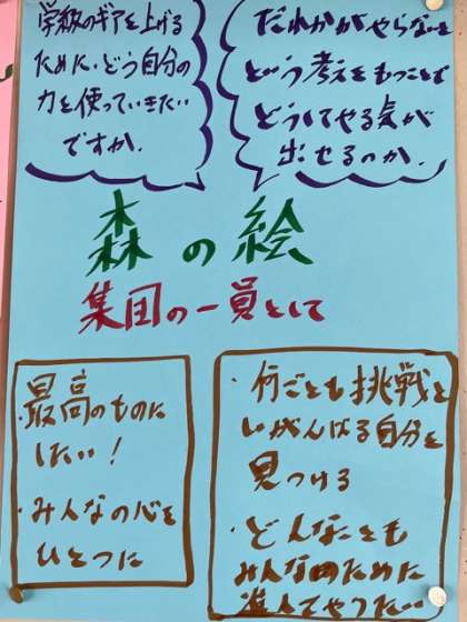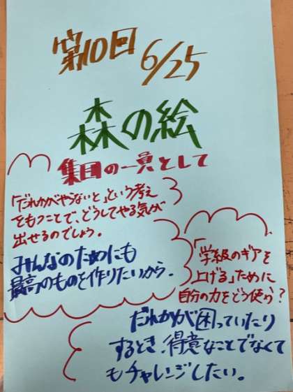 学習発表会での役割分担などにかかわるお話を通して、学級をよりよくしていくために何が必要なのかなどを話し合いました。もうすぐ林間学習。そこでも自分の役割をしっかり果たすことが大切ですよね。