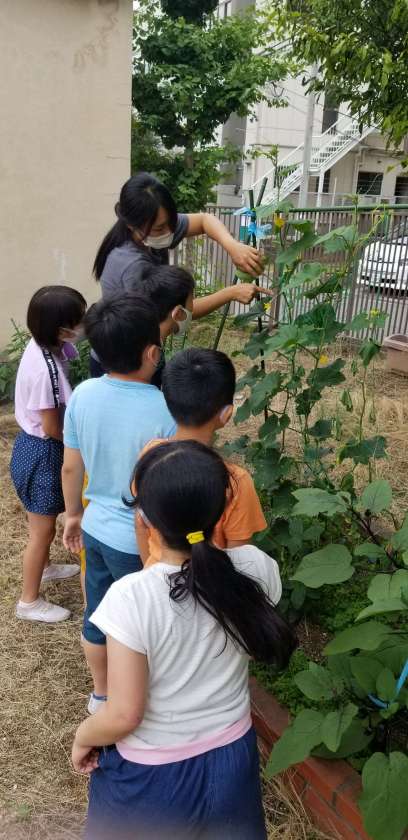 きゅうりの雌花を見て、「きゅうりみたいなのが付いてる!」と雄花との違いについて気づくことができていました。