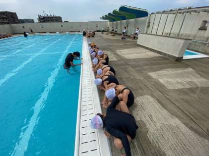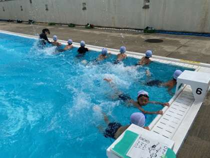 最後のプールでした。各コースに分かれて練習です。新しいコースは、ビート版を使ったコースでした。バタ足をしてすいすいと楽しんで泳ぎました。