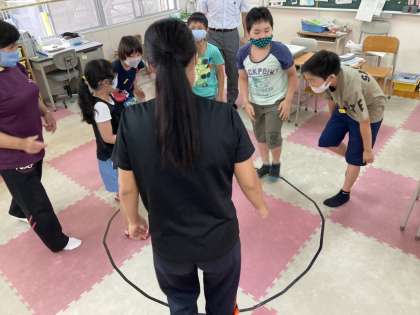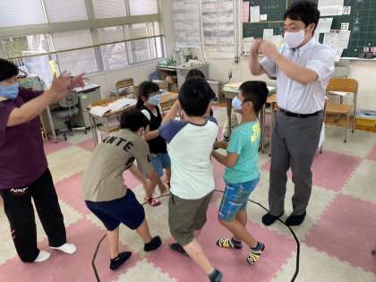 5年生に林間のキャンプファイヤーでするマイムマイムを教えてもらいました。次にいく4年生も楽しく踊ることができました。来年に行く4年生も楽しく踊ることができました。教頭先生の華麗な踊りにも注目です!!!