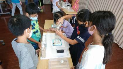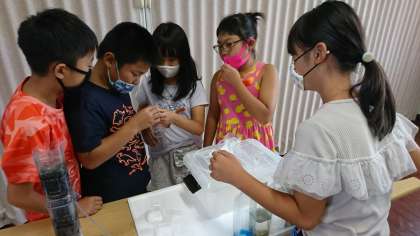 まずは、映像で浄水場のことを思い出します。そして浄水場実験器具を自分たちで組み立てます。