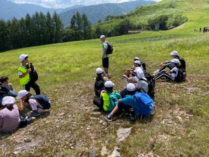 暑いですがお茶を飲み、汗をふきながら、みんな頑張って登っています。