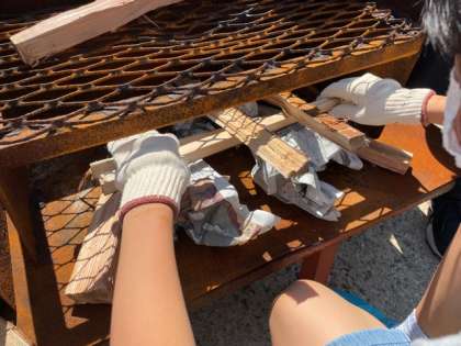 着火係は教えてもらった木の組み方を目指して、声を掛け合いながらがんばっています。