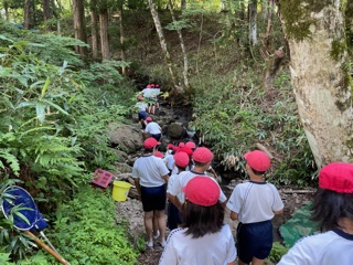 疲れた身体を少し休め今度は沢登りと魚つかみに行きます。
