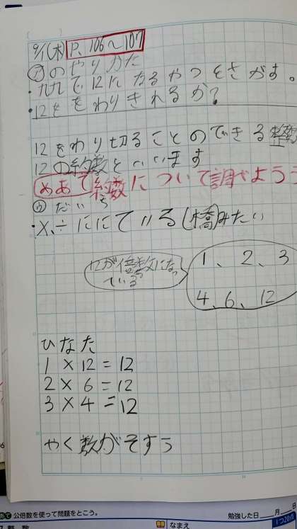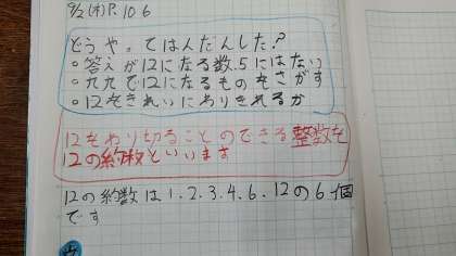 予定では「約数」だけの予定でしたが、あまりにも子どもたちの学習が良く進んでいたので、