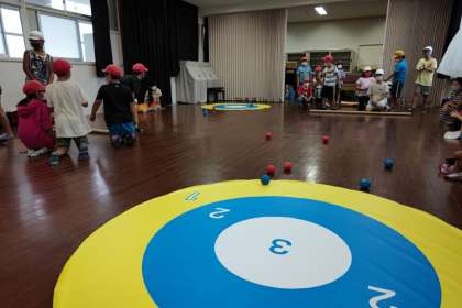 パラリンピックで日本が金メダルをとったボッチャ、4年生で楽しみました。