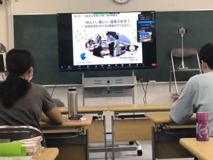 放課後は、岐阜聖徳学園大学の准教授である山田貞二先生にオンラインで指導講評ならびに講演会をじっししていただきました。最近はオンラインで講師の先生にお越しいただくことも増えました。