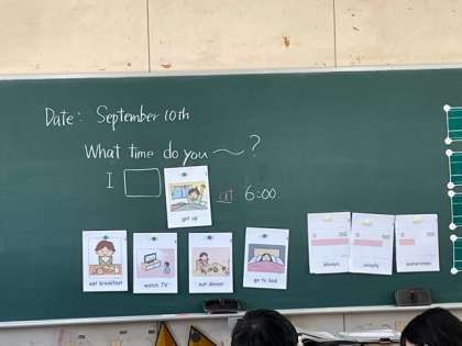 今日の外国語は、1日の生活でいつ何をするかたずねたり、答えたりする学習を行いました!