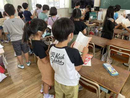 リズムに合わせて声を合わせたり、交互に読んだり、楽しみながら学習することができました。