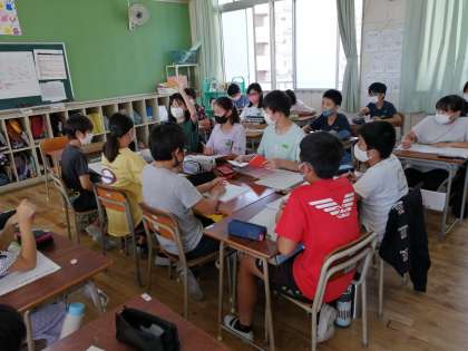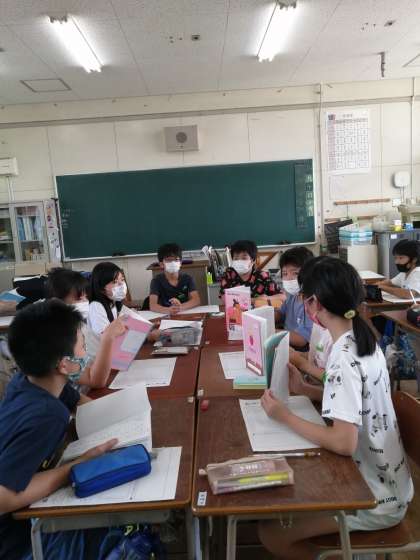 国語の時間に感染症対策を講じながら、話し合い活動をしました。