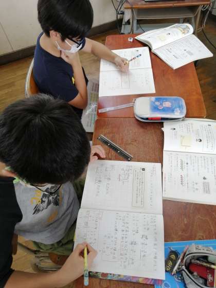 習熟度別にわかれ、少人数指導をしています。