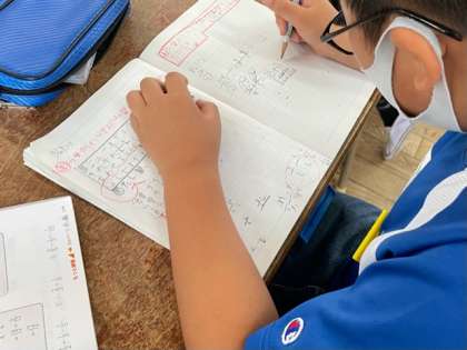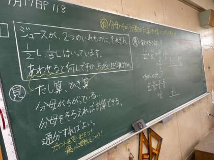 ?今日は分母のちがう分数のたし算ひき算について学習しました。