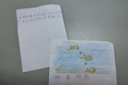 月や星の観察を学習して、観察した結果をメモをにまとめ持ってきてくれる児童もいます。