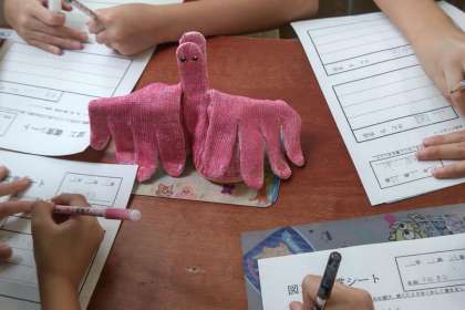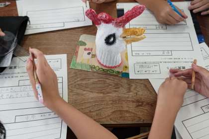 液体粘土の作品が出来上がって飾っていたので、友達のいいところ・上手なところをたくさん見つけました。