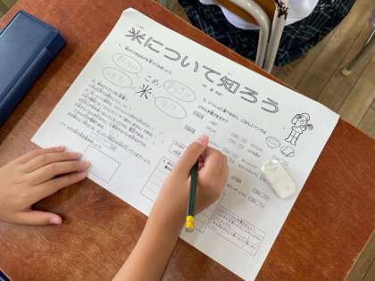 お米からどんなものができるのか、お茶碗には何粒のお米が入っているかなどのお米クイズに挑戦したりと、みんな楽しそうに勉強していました!