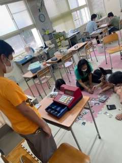 お買い物の学習をしました。お客さん役、店員さん役に分かれて手持ちのお金で買えるかを計算したり、おつりを計算したりと生活に直結した学習になりました。