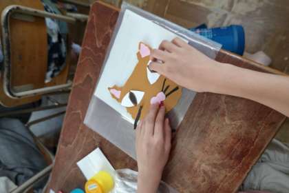 まずは、山猫作りです。怒った山猫を目や口、ひげで表現していきます。