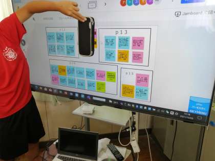 自宅で事前にお話を読み、ジャムボードに道徳みつけをかくという宿題を経て、授業を行いました。