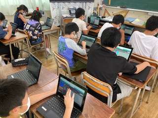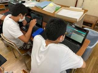 今は、プログラミングに取り組んでいます。今日、初めて使うソフトですが。お互いに教えあって、どんどん進んでいます。