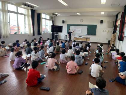 1・2年生合同で、持ち物ややくそくの確認をしました。