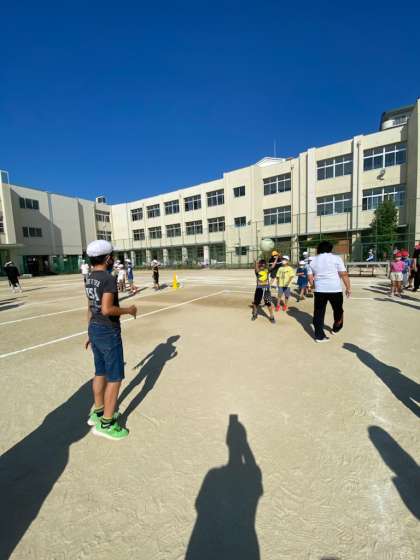 6年生筆頭に、14日のドッジボール大会にむけて、ルールの確認と練習を行いました。