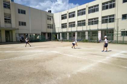体育科では、ティーバッティングに取り組んでいます。