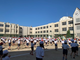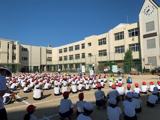 まず初めに、校長先生からのお話をしっかり聞きました。そして、ルール説明を聞いたり、準備体操を行ったりしました。