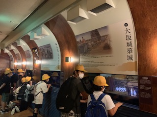 大阪城の中に入りました。天守閣の中ではいろいろな展示があり、子ども達は社会科で習った内容と重なることが多く、とても熱心に観覧しています。